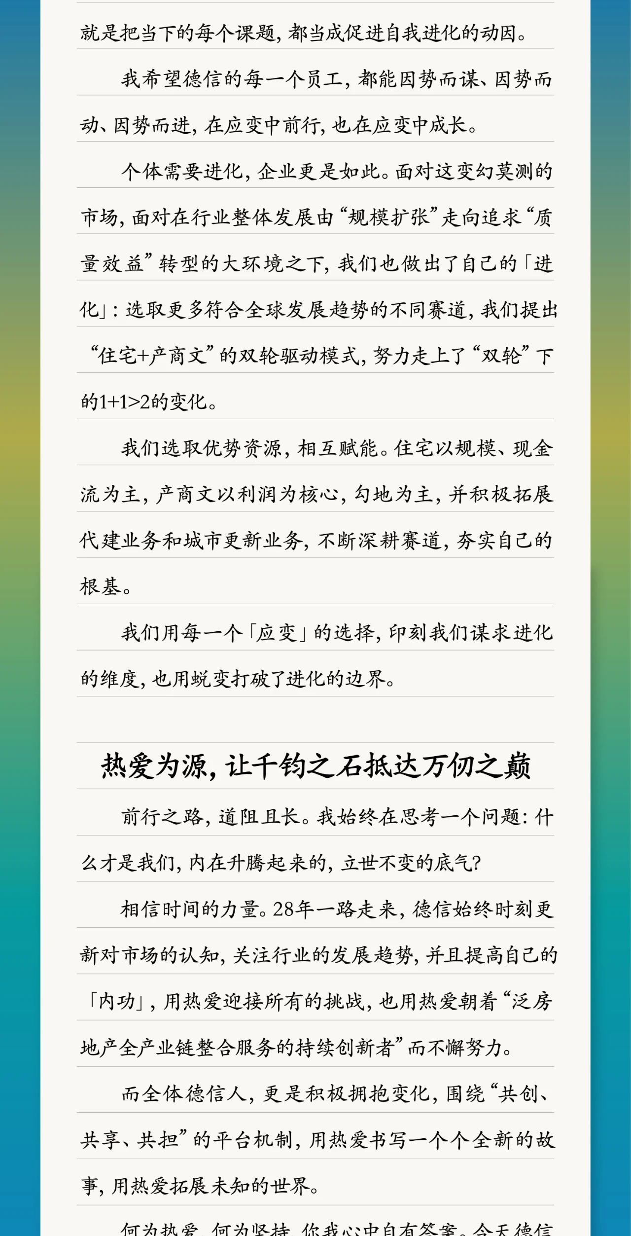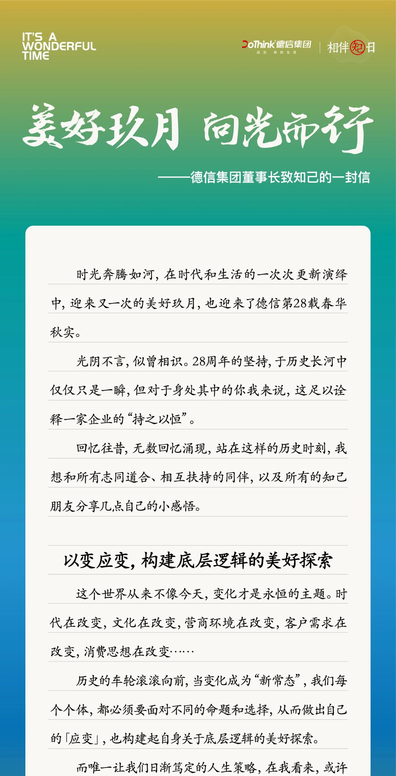 美好玖月,向光而行 | 28周年,德信集团董事长致知己的一封信