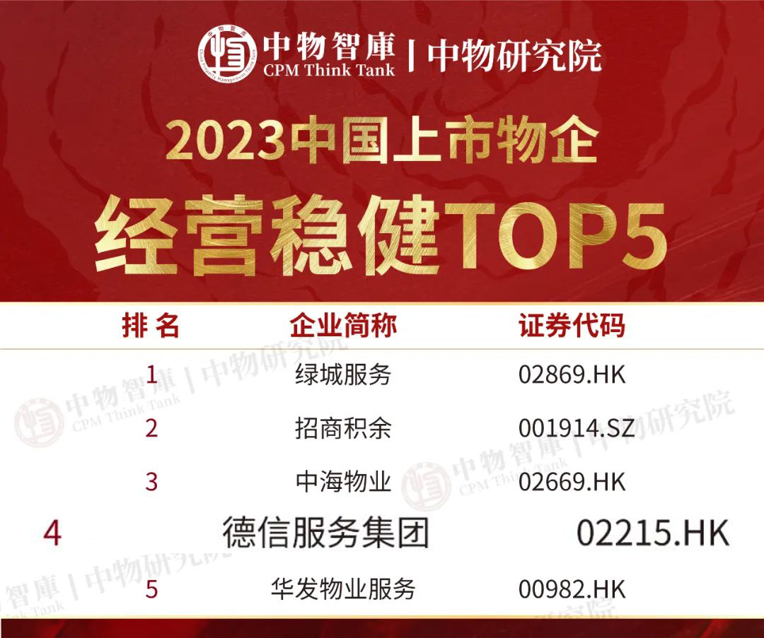 德信服务获评中国上市物企经营稳健TOP5
